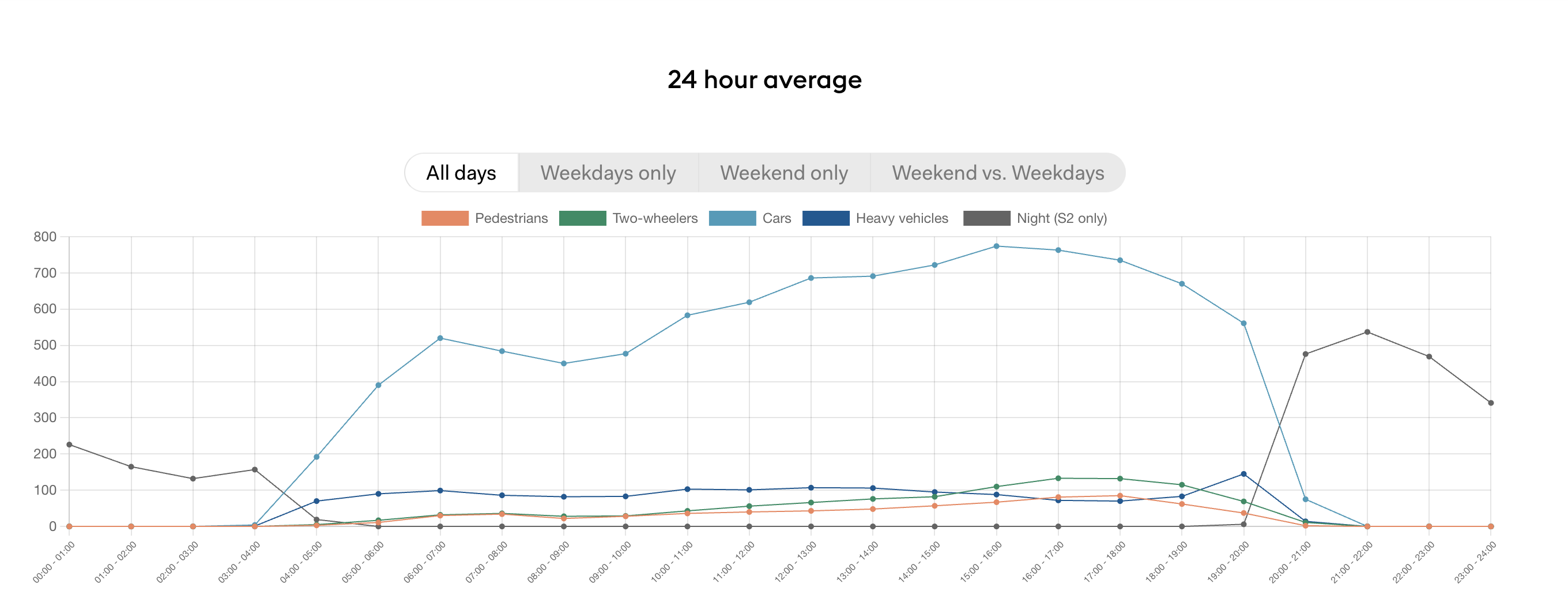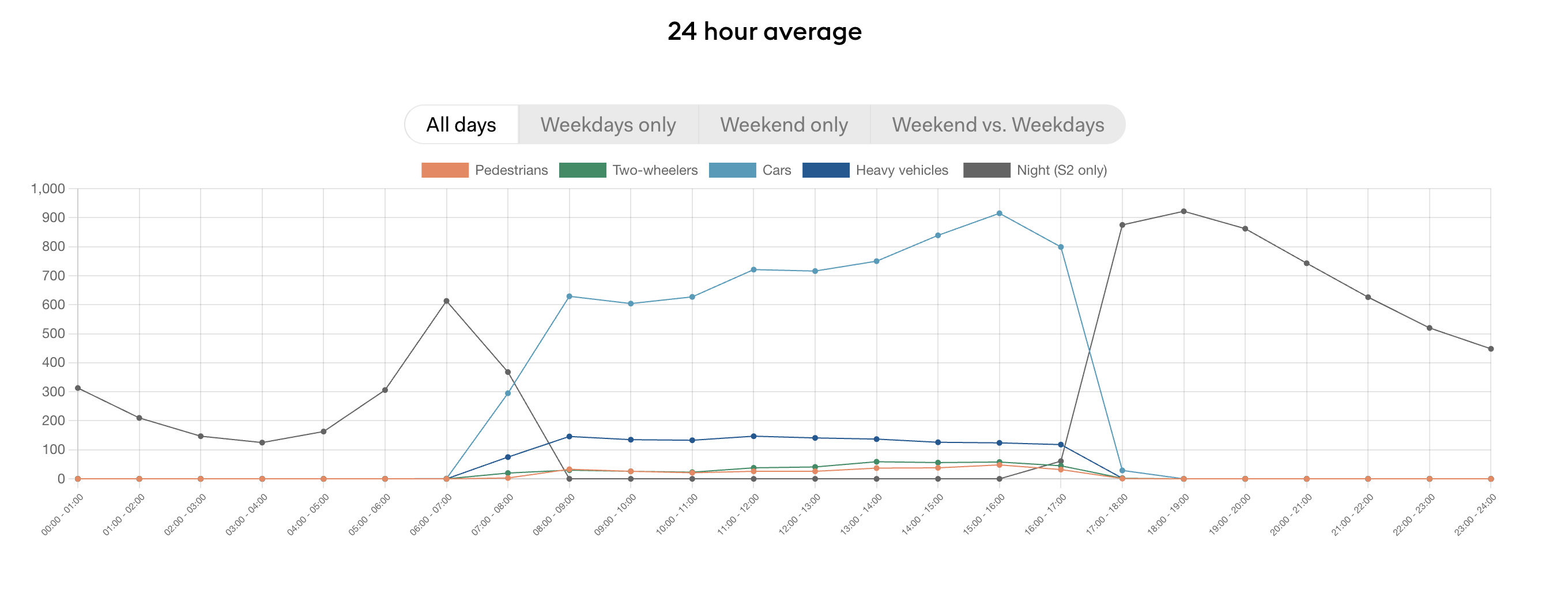 Vehicle traffic is pretty much identical, with a few more Heavy Vehicles, but bike and pedestrian numbers (per hour) are about half, which is not surprising (as it has also been wet).