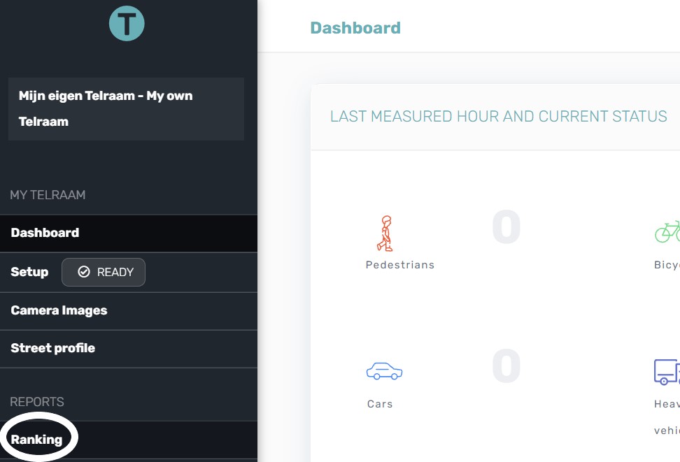 This will take you to the page containing all the data collected by your Telraam. On this page, you will find the ranking option: