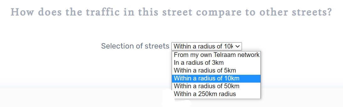 - Comparison with streets within a radius of 3, 5, 10, 50 or 250 km